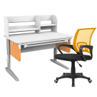 Комплект Дэми СУТ.62 PRO парта + кресло + надстройка + выдвижной ящик белый/оранжевый/серый с креслом Balance оранжевый